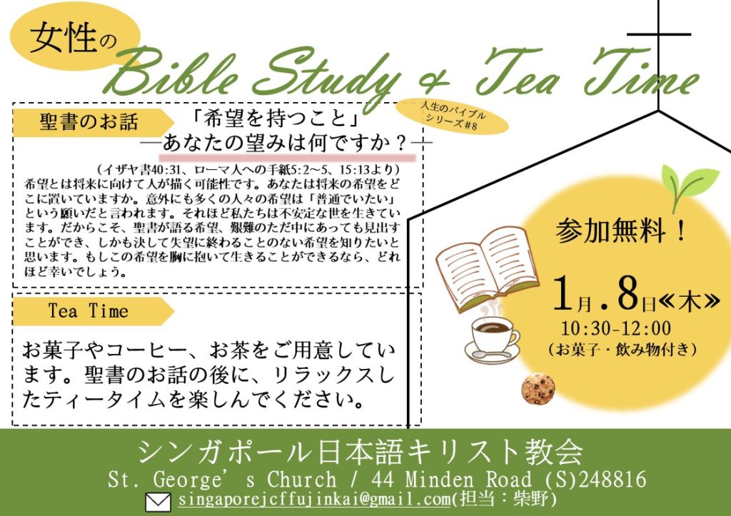 1月女性のバイブルスタディ&ティータイム-1/8(木)-